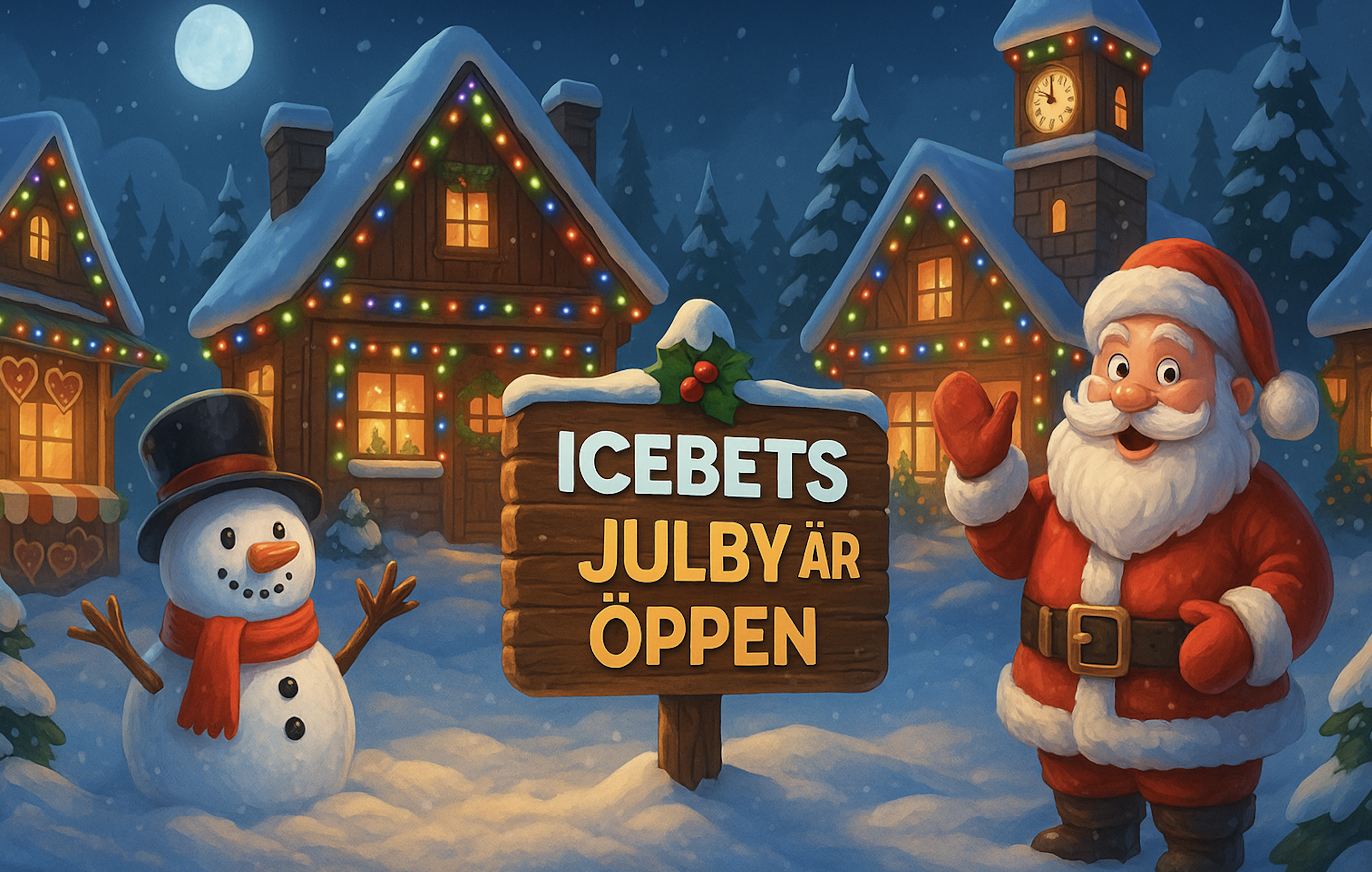 IceBet Àr ett iskallt bra nyhetskasinon dÀr du stÀndigt hittar smakfulla erbjudanden och julen gör ingen besviken. Webbplatsens julby Àr nÀmligen öppen! Rör dig bara framÄt pÄ kartan och plocka alltid upp det dagliga erbjudandet. Det erbjuds bonusar och gratissnurr pÄ upp till 10 000kr till julens bÀsta spel.