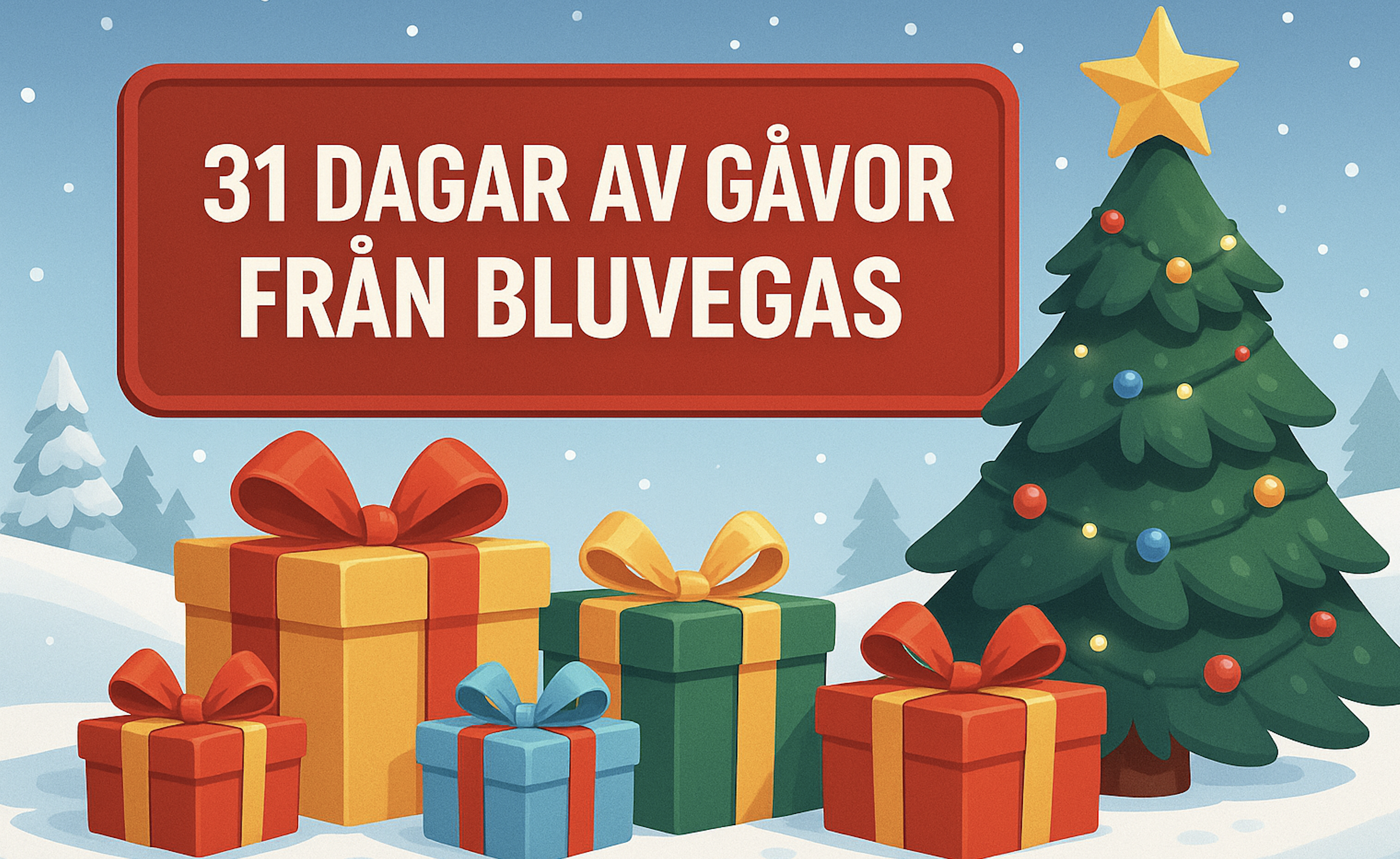 Det Àr dags att spÀnna hjÀlmen ordentligt, för nu skakar det! BluVegas Casino har startat en festlig kampanj som varar hela december, 31 Days of Gifts. FrÄn och med den första december fram till Ärets slut, det vill sÀga den 31.12, kan du plocka upp en daglig gÄva frÄn BV:s tomtar.