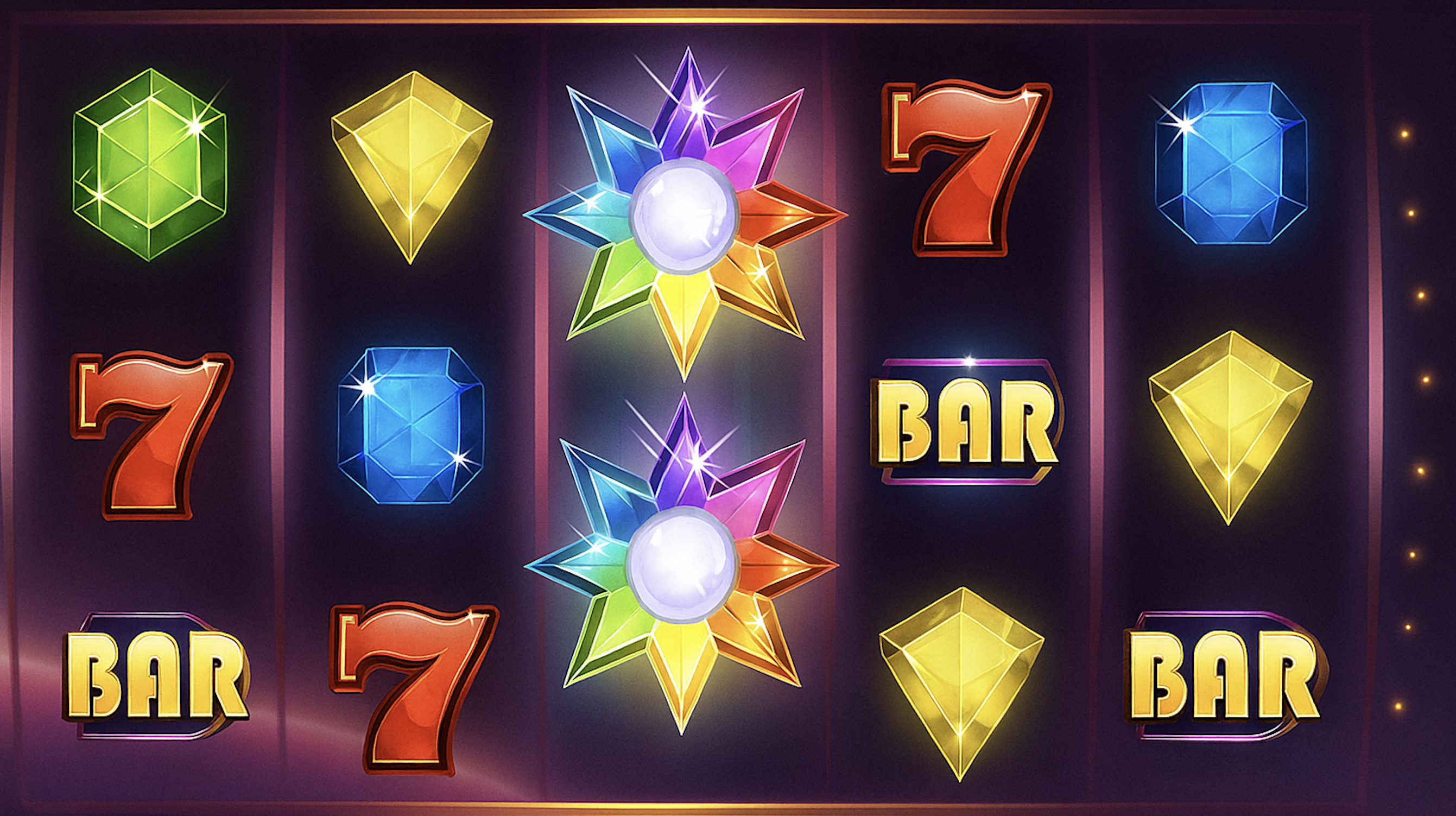 Nu när vi har diskuterat Starbursts utseende är det dags att dyka ner i slotens tekniska element. Starburst är ett traditionellt femhjuls NetEnt-spel där varje hjul har totalt tre symboler. Det Svensks tio vinstlinjer i sloten, men något ovanligt betalas vinster ut både från vänster och höger. Det handlar alltså om ett så kallat win-both-ways-spel.